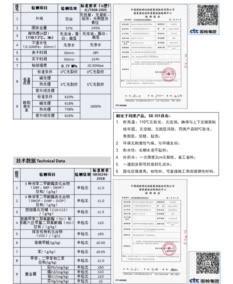 Garros 加洛斯 SX-101 ——运动场地专用沥青底料 Garros加洛斯 SX-101运动场地专用沥青底料,采用特种饱和分低分子高品质石油沥青研制而成,固含量高,渗透力强,具有出色的流变性和超强的握裹力,跟石英砂、水泥制品等固体物质有很好的和易性与相容性,环保无污染,与环境友好,常温为黑褐色膏状液体。抗冻耐晒,持久耐用。 特性与优点 Features and advantages 1.高温110℃无流淌、滑动、滴落,夏天曝晒不发软、不粘脚。0℃低温无龟裂、无断裂。抗冻耐晒,适用于各种气候条件。 2.与石英砂、水泥的混合物用于基面修补积水、坑洼,补积水一次成型厚度达1~20mm,不开裂、不起鼓、不脱层,大大提高地面匀质性,完成后的面层效果更理想。 3.产品成型固化后形成稳定的硬质防水封闭层,不透水不透气,即便雨水长时间浸泡任不起泡、不起砂,一道刮涂就能封孔封底,确保后续施工面层不起泡不脱层,省工又省料; 4.碱处理、热处理、UV紫外线处理后,5℃测试无裂纹,断裂延伸率≥600%,适应各种基面的热胀冷缩。 5.呈稳定的胶状流体乳液,5℃~40℃正常施工作业,不分层不堆料,刮涂流畅,施工快捷。 6.与沥青和混凝土基面粘结强度≥0.70MPa。 7.水性产品,无毒无害,环保无污染。 8.环保,与环境友好。 9.不燃烧,不助燃,安全性能高。 10.工艺成熟可靠。 应用领域Fields of application Garros@加洛斯@ SX-101沥青底料专用于运动场地沥青基面的封孔封底、填充修补、补积水找平、基面补强,常作为多种基面的粘结底料,使地面基础表面平整密实。 |